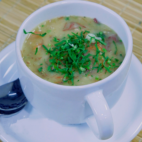 2 - Para o creme, bata no liquidificador o mamão, a goiaba, o iogurte e o mel.