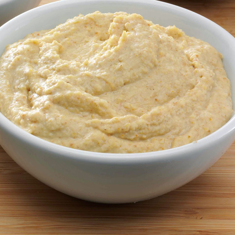 3 - Escorra-o e passe pelo liquidificador com um pouco da água em que foi cozido(se preferir, use o grão de bico que é vendido em vidro com a água e tudo). Deve ficar uma espécie de purê espesso;